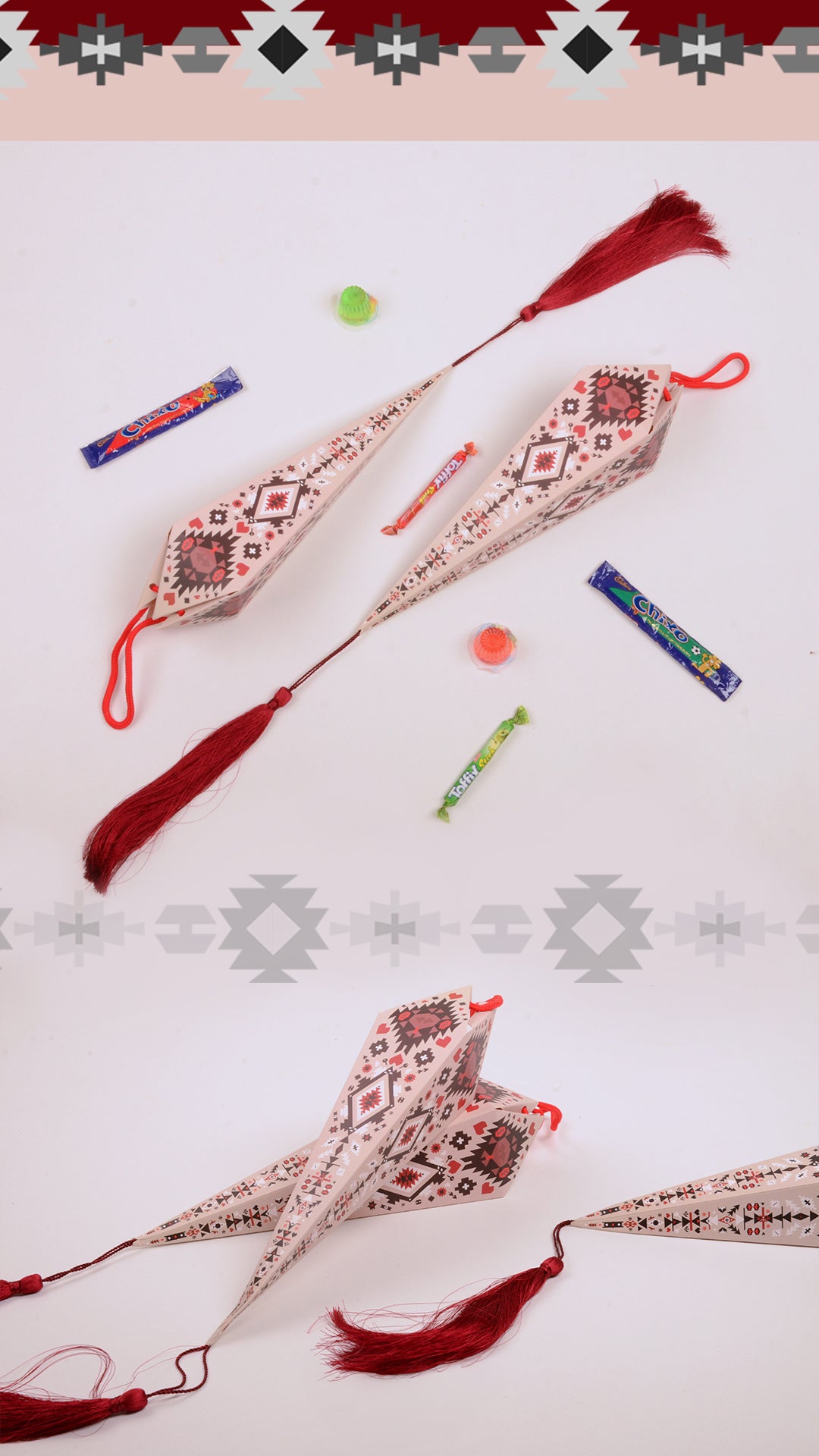 علبة قرقيعان أنيقة بنقشة السدو باللون الاحمر العنابي