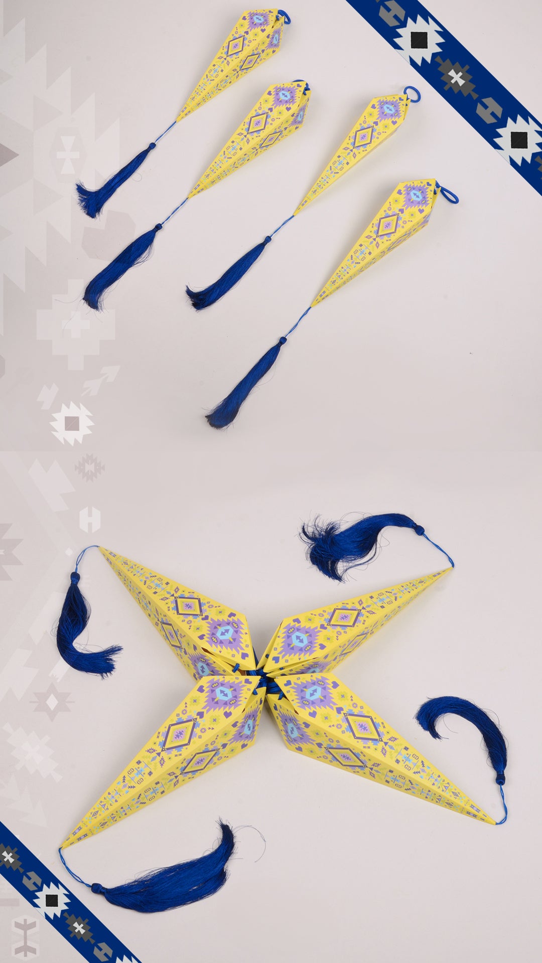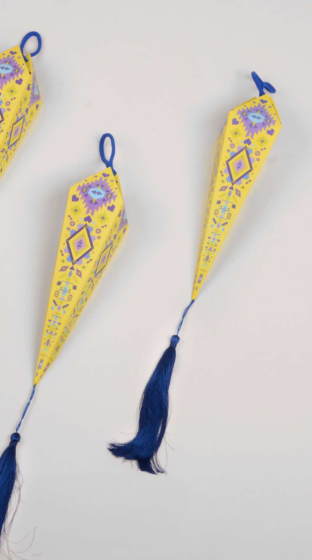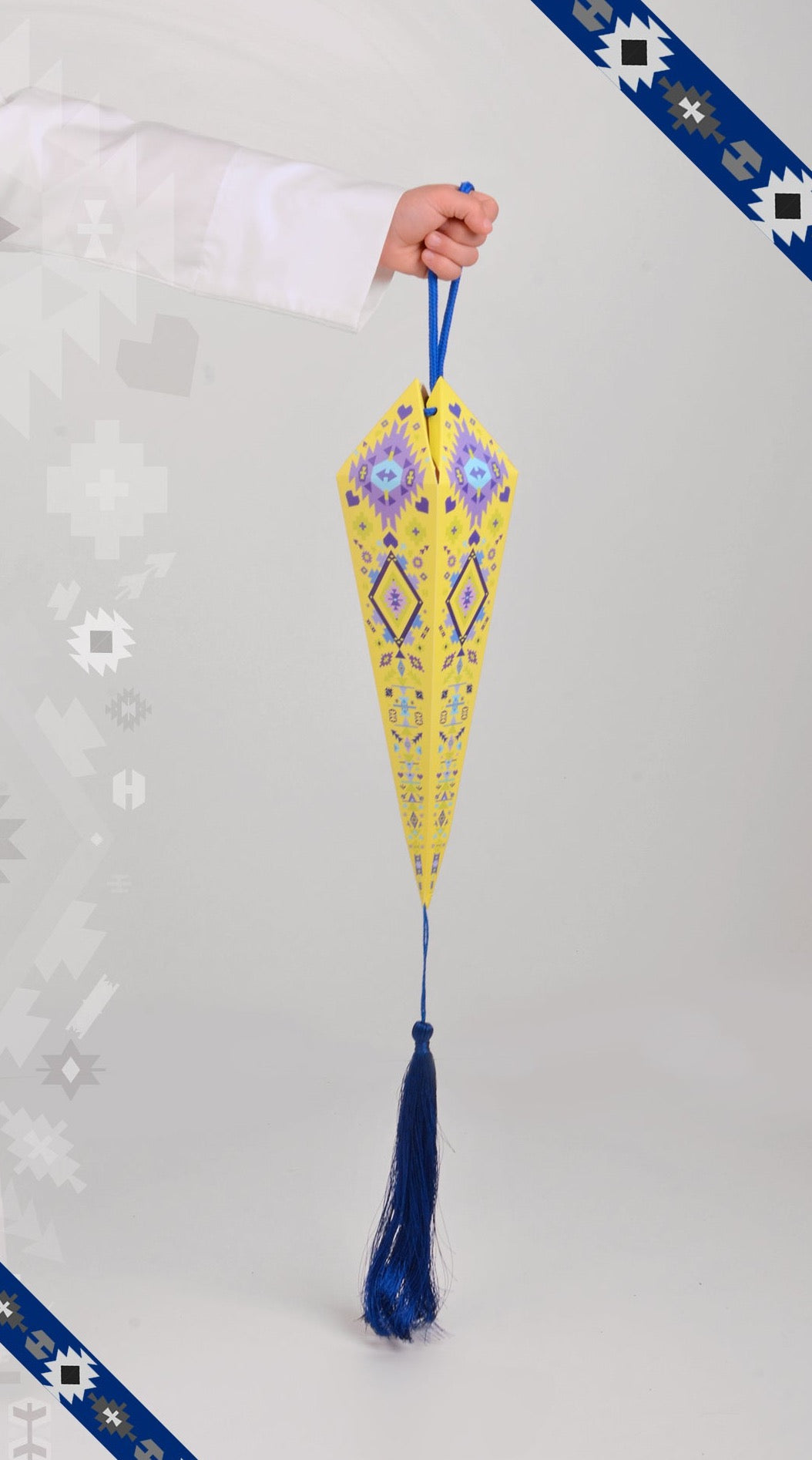 علبة قرقيعان أنيقة بنقشة السدو باللون الاصفر والازرق