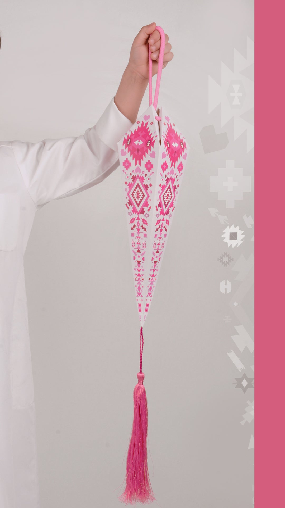 علبة قرقيعان أنيقة بنقشة السدو باللون الوردي الزاهي