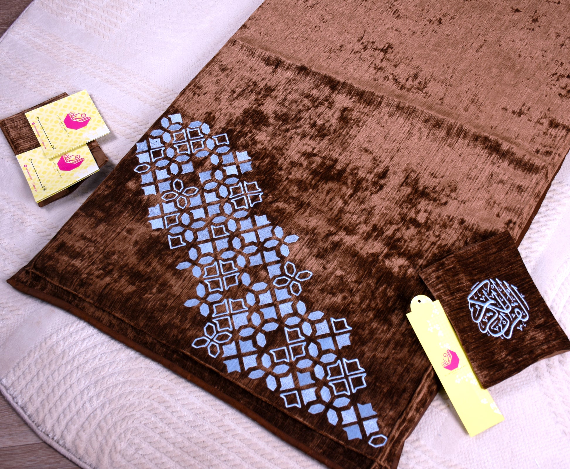Al-Jenan Classic collection - Luxury Prayer Set - (Brown & Blue) wc set