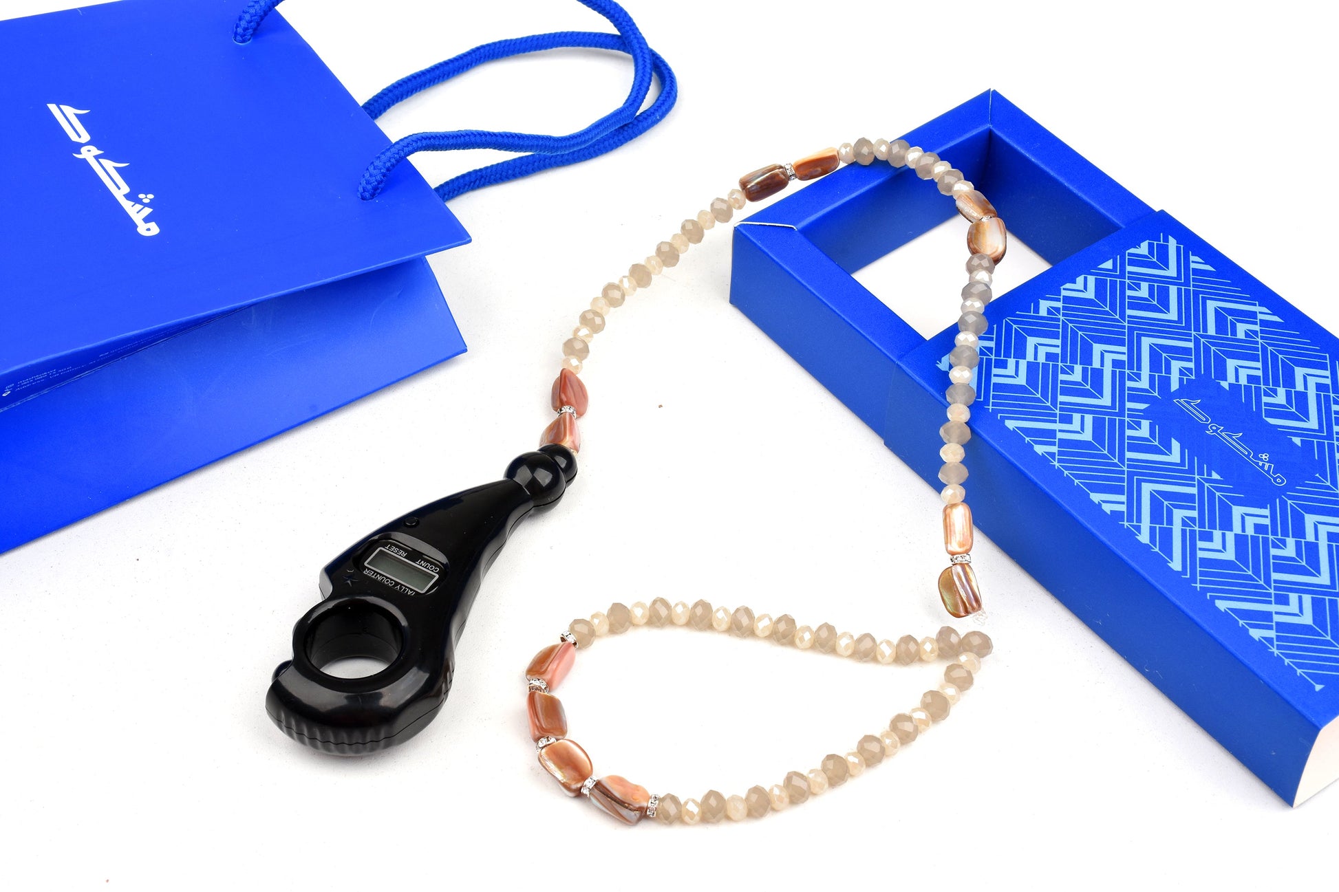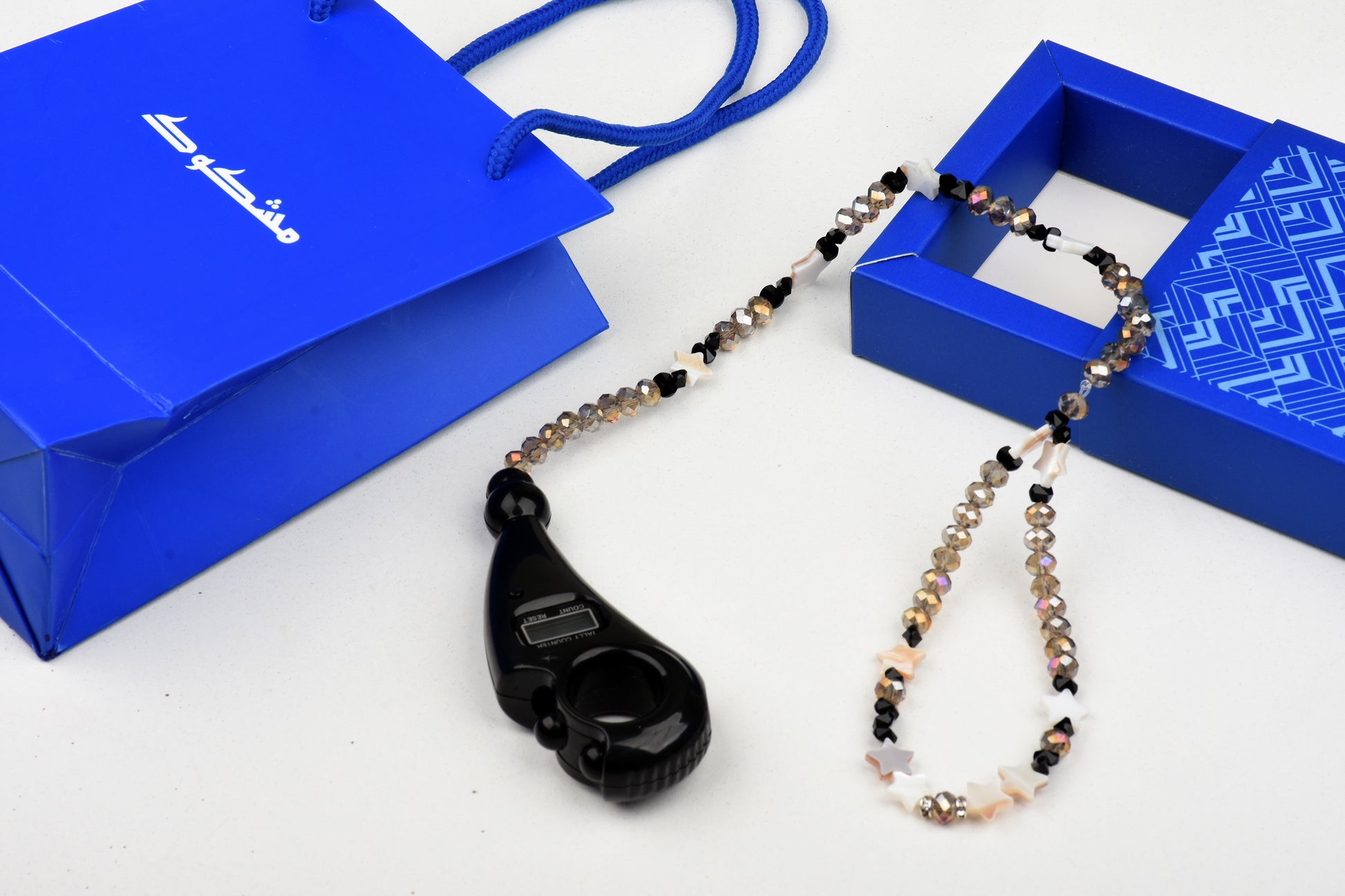 مسباح الكتروني أنيق مشكوك بحبات الكريستال منهي بسوار