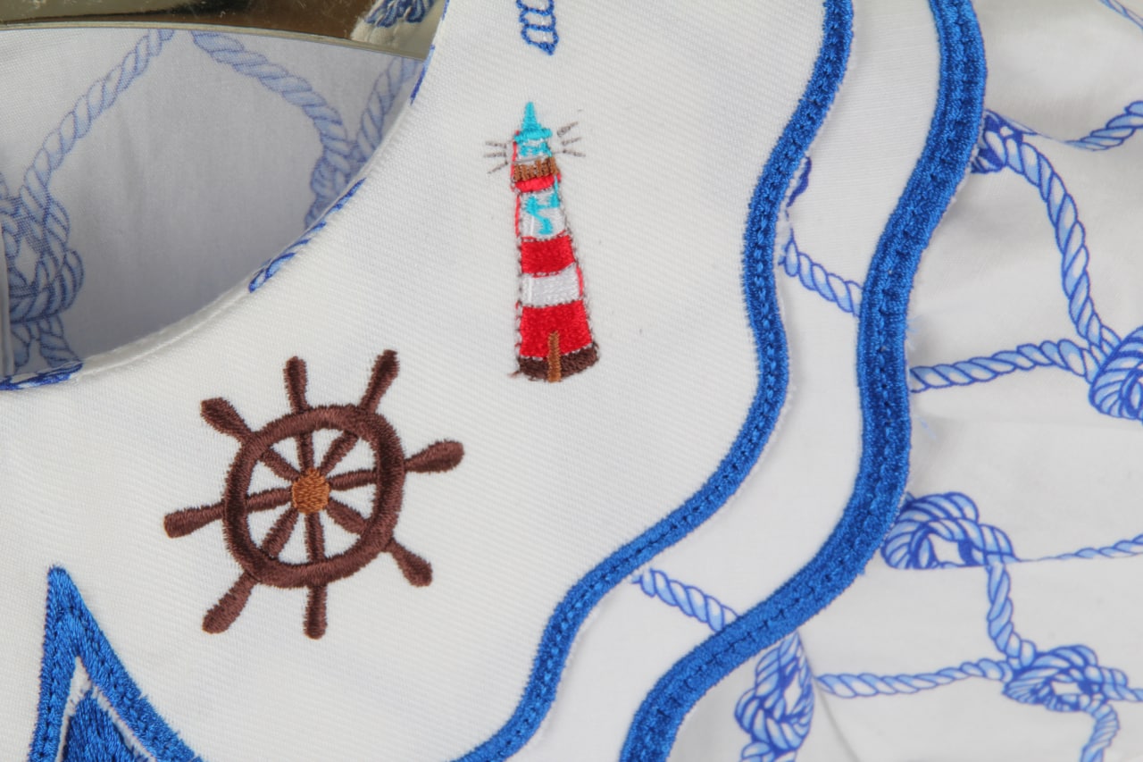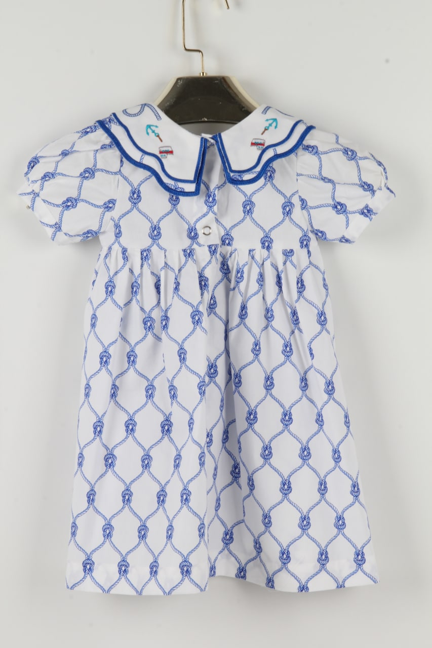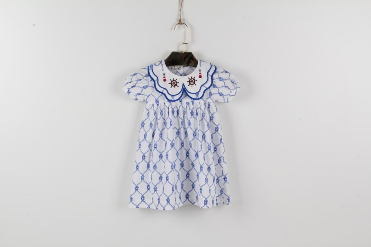 Blue dress with embroidered collar
