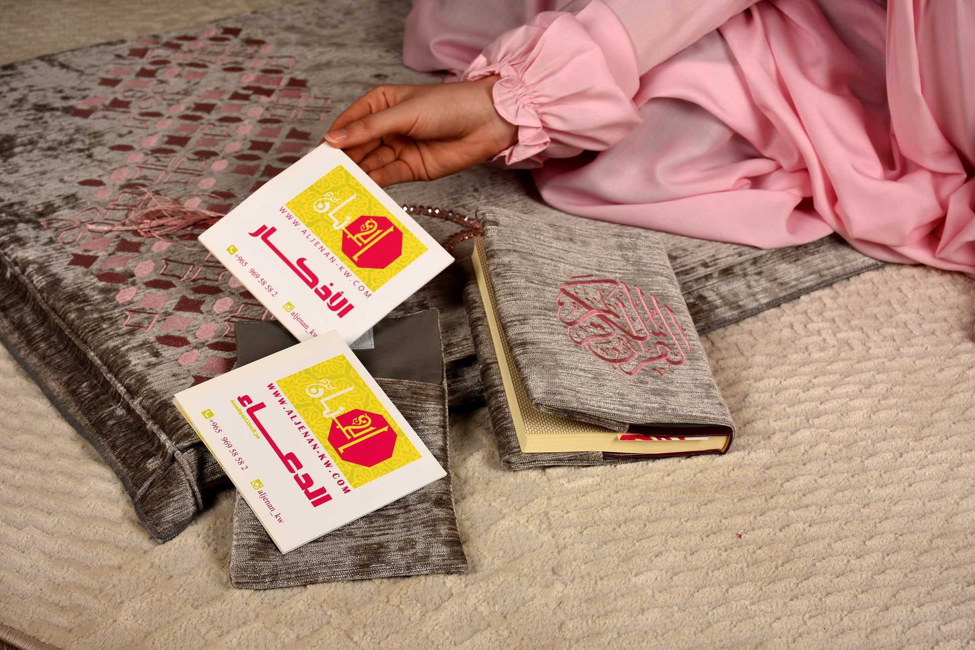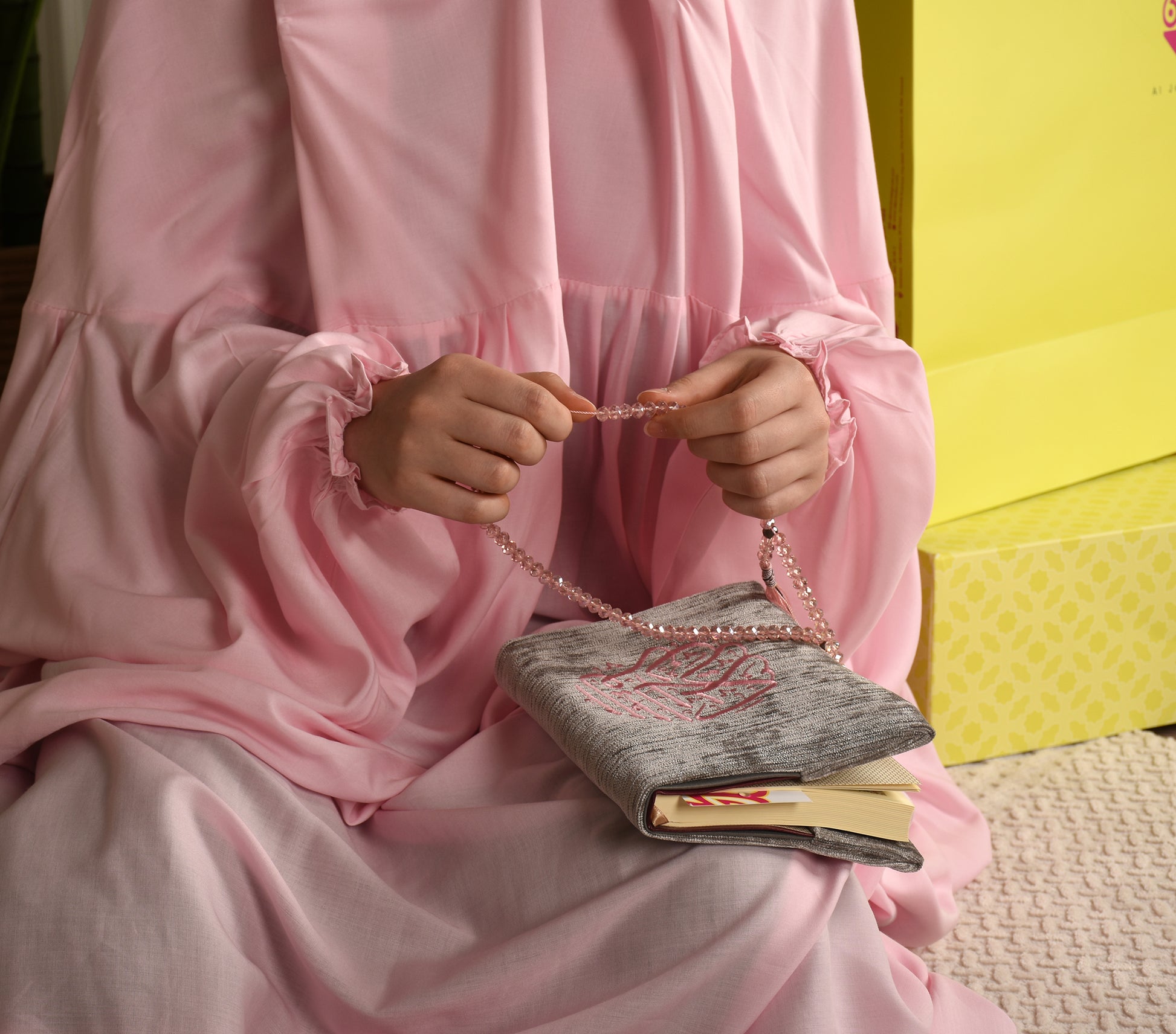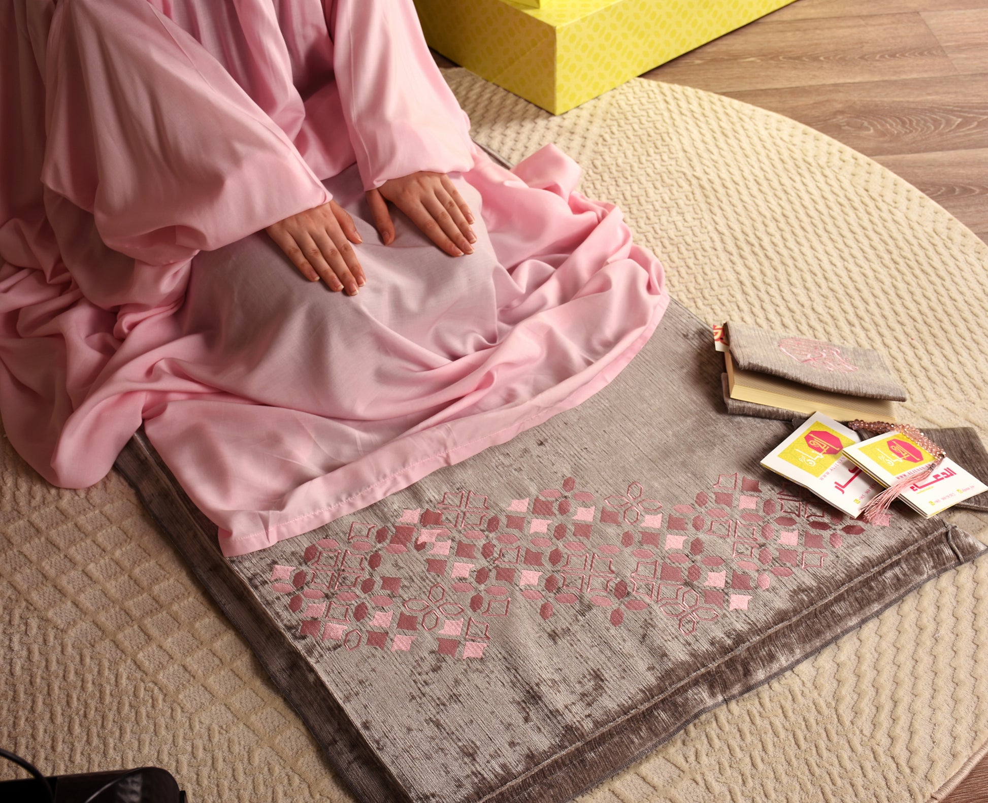 Al-Jenan Classic collection - Luxury Prayer Set - (Gray & Pink) wc set