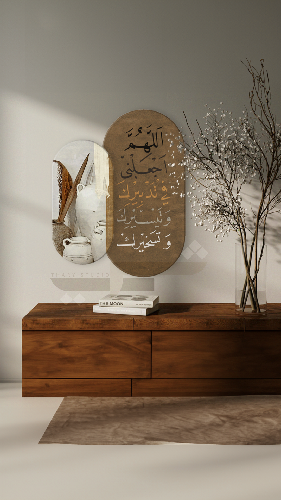 لوحة من الكانفس وباطار بشكل بيضاوي متوفرة بعدة قياسات