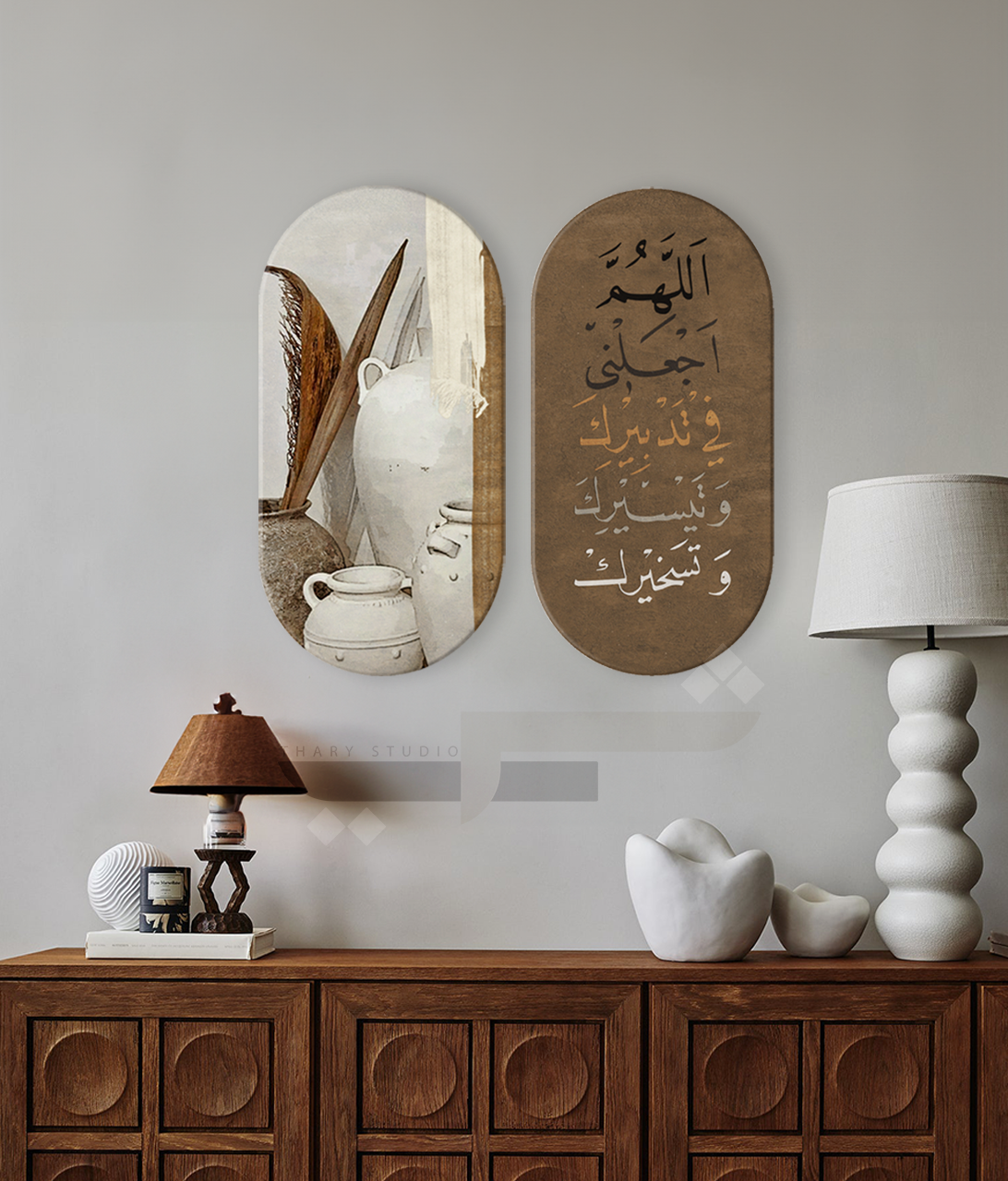 لوحة من الكانفس وباطار بشكل بيضاوي متوفرة بعدة قياسات