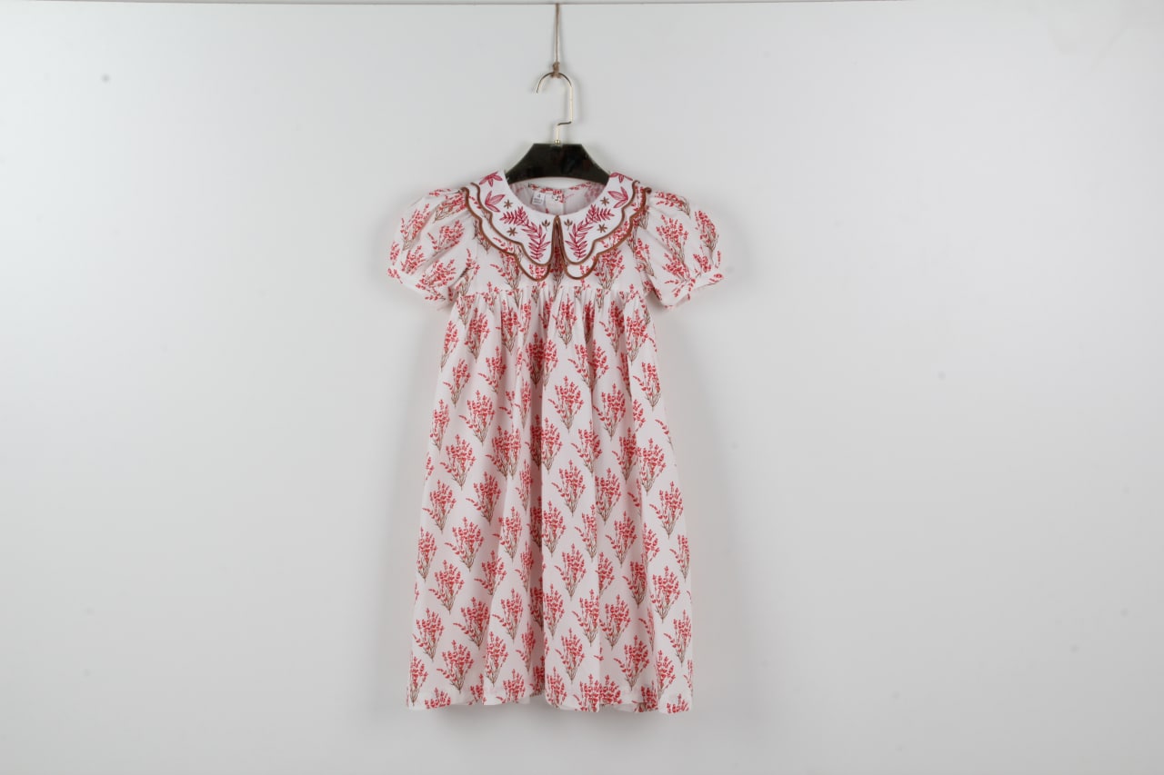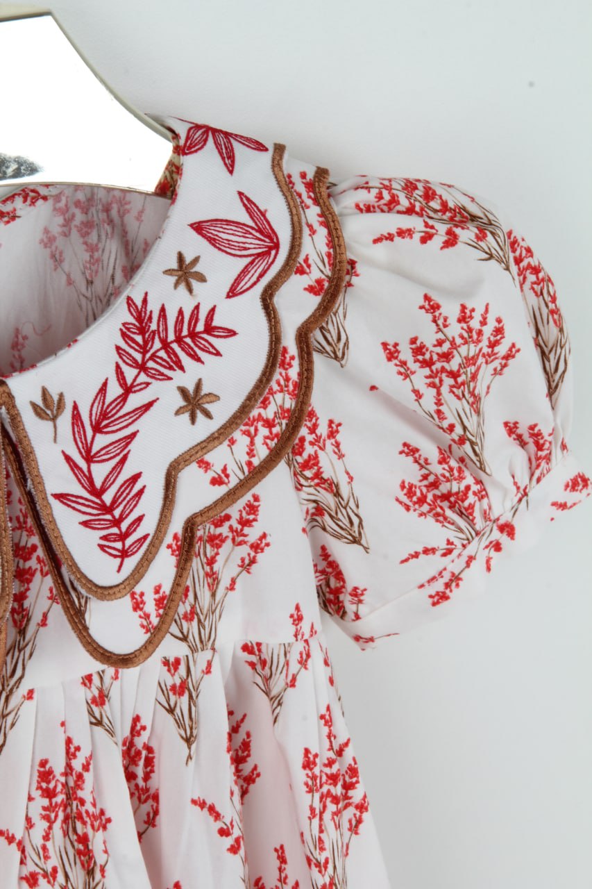 Red dress with embroidered collar